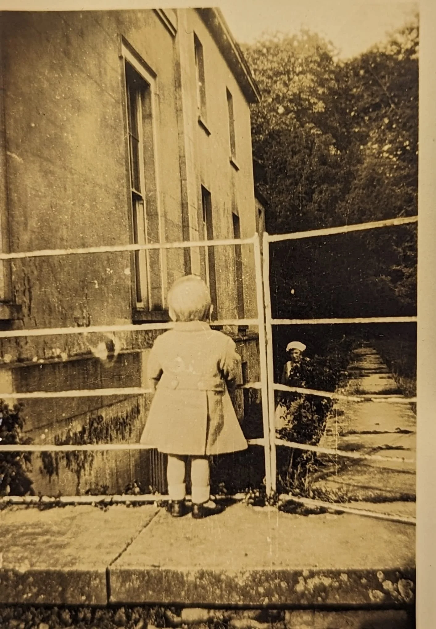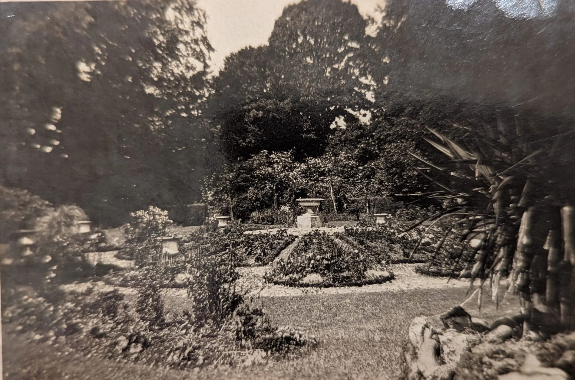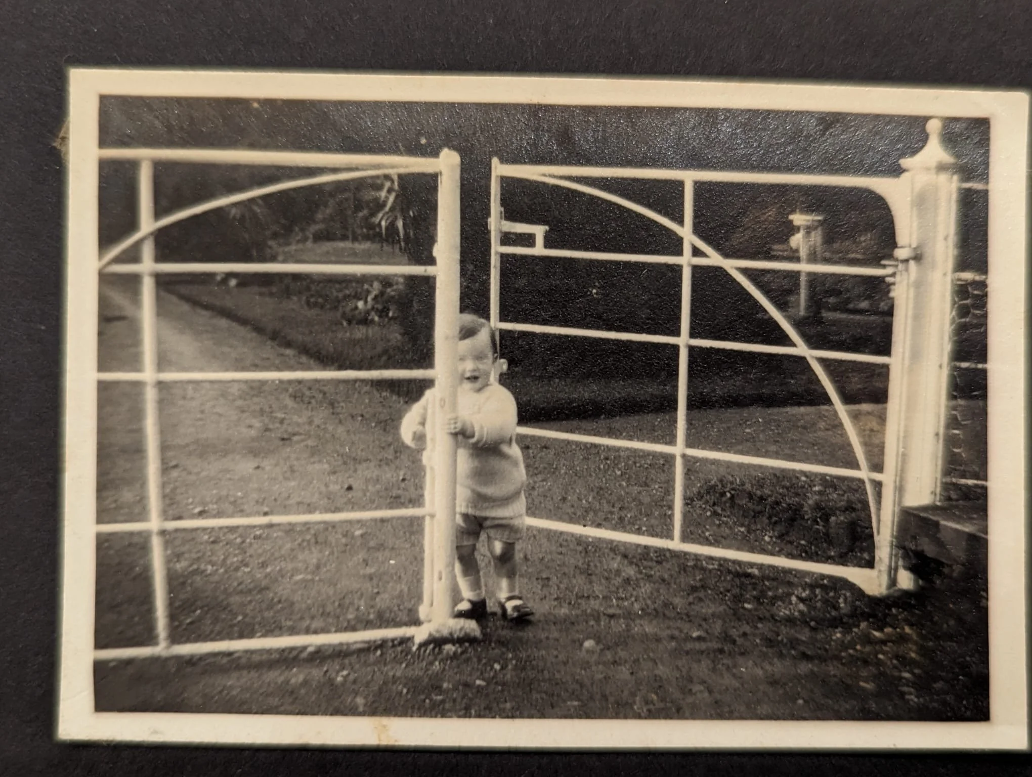 Peter Bomford at the gates leading to Flower Knot, 1926